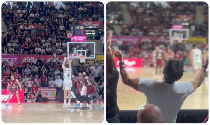 Απίθανο βίντεο από την ΚΑΕ Παναθηναϊκός AKTOR με την αντίδραση που έχει ο Δημήτρης Γιαννακόπουλος στο μεγάλο τρίποντο του Χουάντσο Ερνανγκόμεθ στην τέταρτη περίοδο του αγώνα με την Μπάγερν Μονάχου.