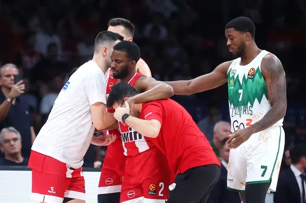 Οι Γιώργος Μπαρτζώκας και Χρήστος Μπαφές έδειχναν να μην έχουν πιστέψει το «κακό» που βρήκε τον Κίναν Έβανς