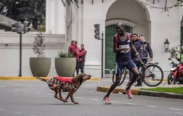 Ένα σπάνιο περιστατικό έλαβε χώρα στο Μπουένος Άιρες, όταν ένας αθλητής δεν κατάφερε να κόψει πρώτος το νήμα, αφού τον πήρε στο... κυνήγι ένας σκύλος.