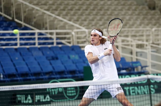 Ο Στέφανος Τσιτσιπάς έκανε την πρώτη του προπόνηση στο ΟΑΚΑ εν όψει του Davis Cup.